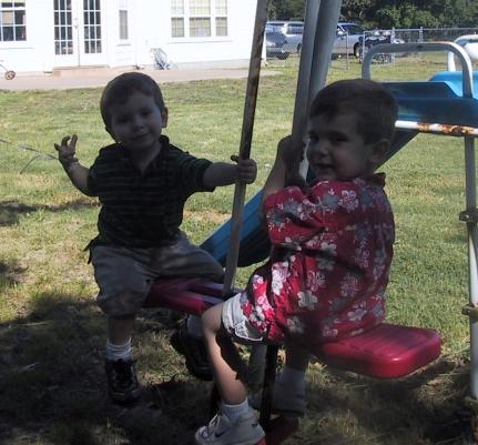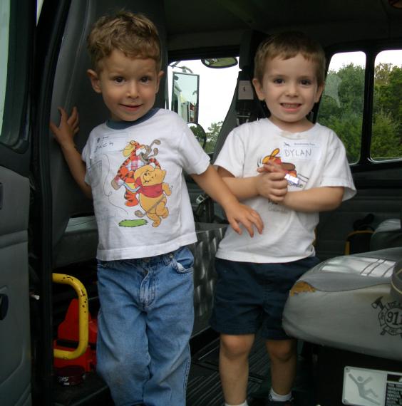 - Pic of Dylan & Zach in a fire truck at the Breakaway Park Picnic