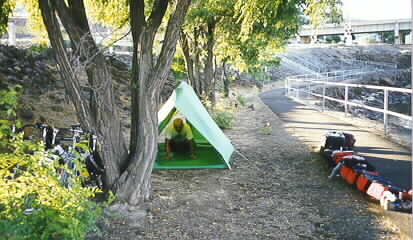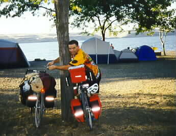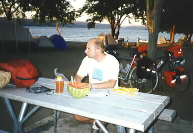 the Columbia River. Enjoyed a watermellon given to us by a hippie camper.